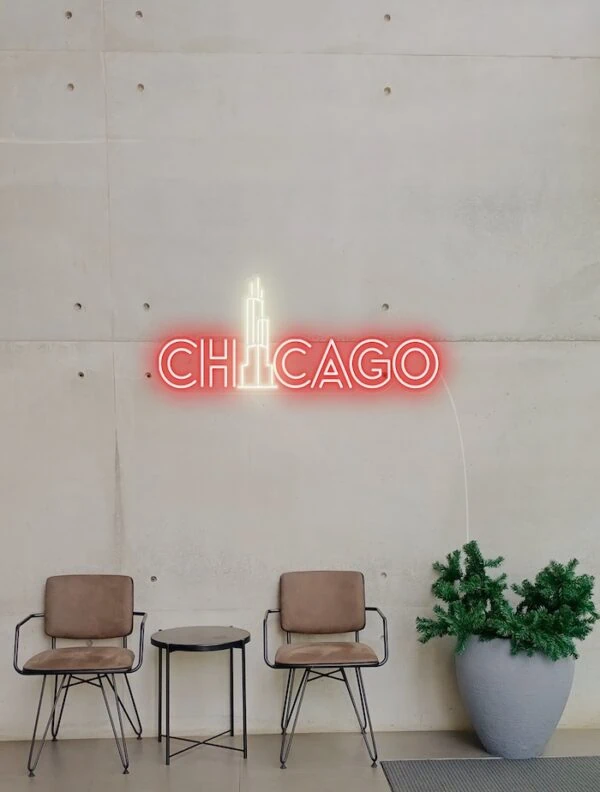 Bring a taste of the Windy City into your home with our Chicago Neon Sign. This eye-catching piece captures the iconic skyline and electric energy of Chicago in vibrant colours, adding a touch of urban cool to any space. Whether you’re a Chicago native or simply admire the city’s diverse culture and architectural wonders, our neon sign is a stylish addition to your home bar, games room, office, or any room that needs a bit of Chicago attitude. Crafted with top-quality materials and designed for maximum impact, this sign is a must-have for anyone who appreciates the bold spirit of Chicago. It also makes a thoughtful gift for those who love urban decor and city life.
