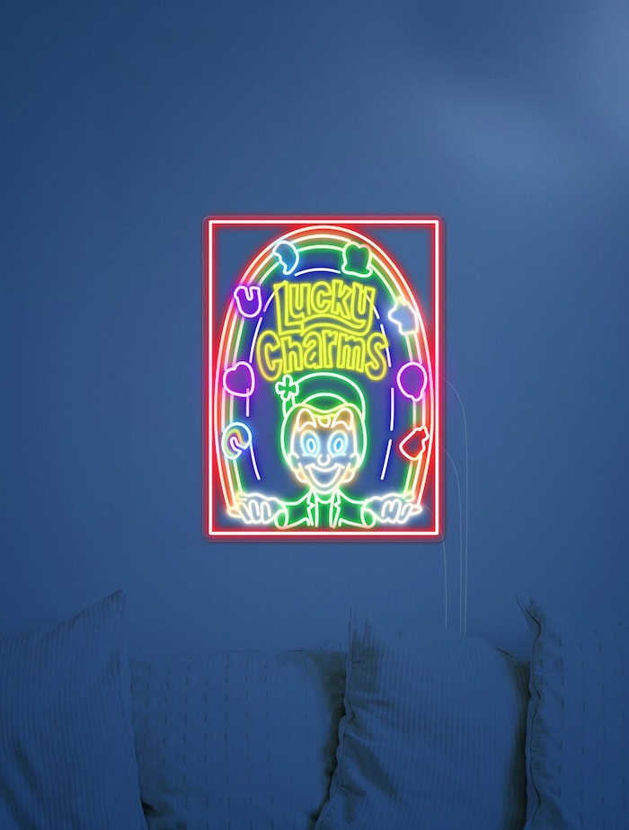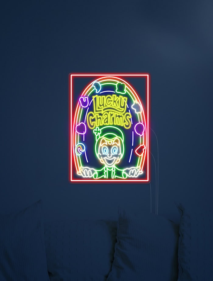 Bring a touch of magic to your kitchen or café with this Lucky Charms LED neon sign featuring the cheeky leprechaun mascot, Lucky. A playful décor piece for breakfast nooks, restaurants, or cafés.