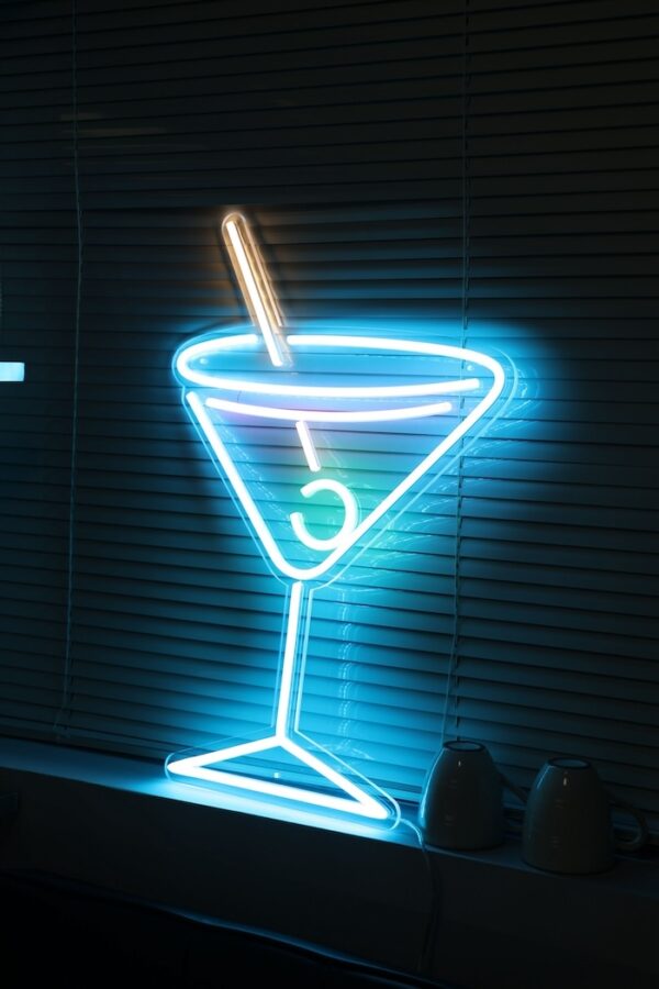 Nightlife entrepreneurs and drink enthusiasts would fall in love with this cocktail bar neon sign. The neon sign features a simple, yet stylish design that displays a Martini glass and the words “Cocktail Bar” in a beautiful blend of blue and pink colours.